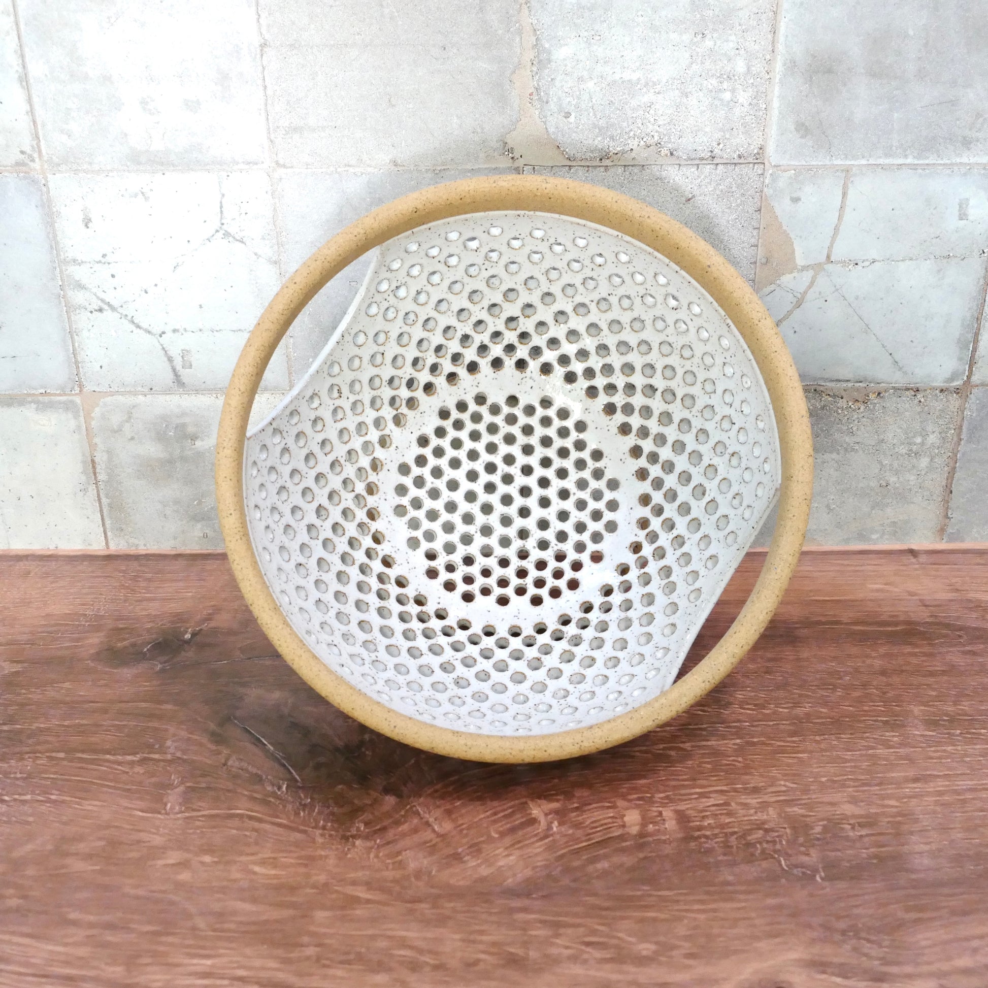 ONE-OF-A-KIND 4 - Honeycomb Colander Variation in Speckled White